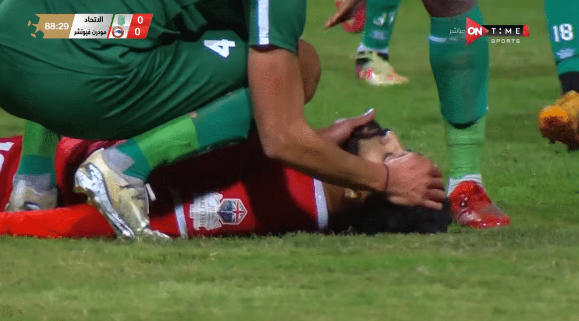 The moment Modern Future FC's Ahmed Refaat collapsed. 😟