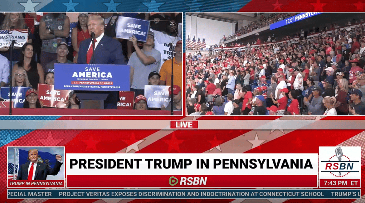 He was joined by Pennsylvania gubernatorial candidate Sen. Doug Mastriano, U.S. Senate candidate Dr. Mehmet Oz and U.S. Representative candidate Jim Bognet. All of whom he has endorsed.
