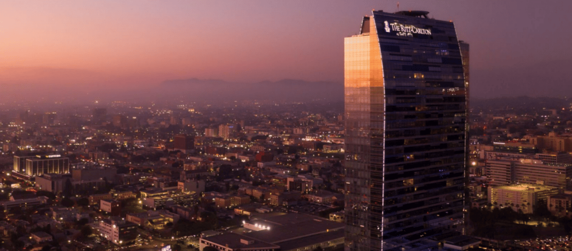 A man was taken into custody Tuesday morning after he was seen climbing the exterior of the Ritz-Carlton hotel in downtown Los Angeles.