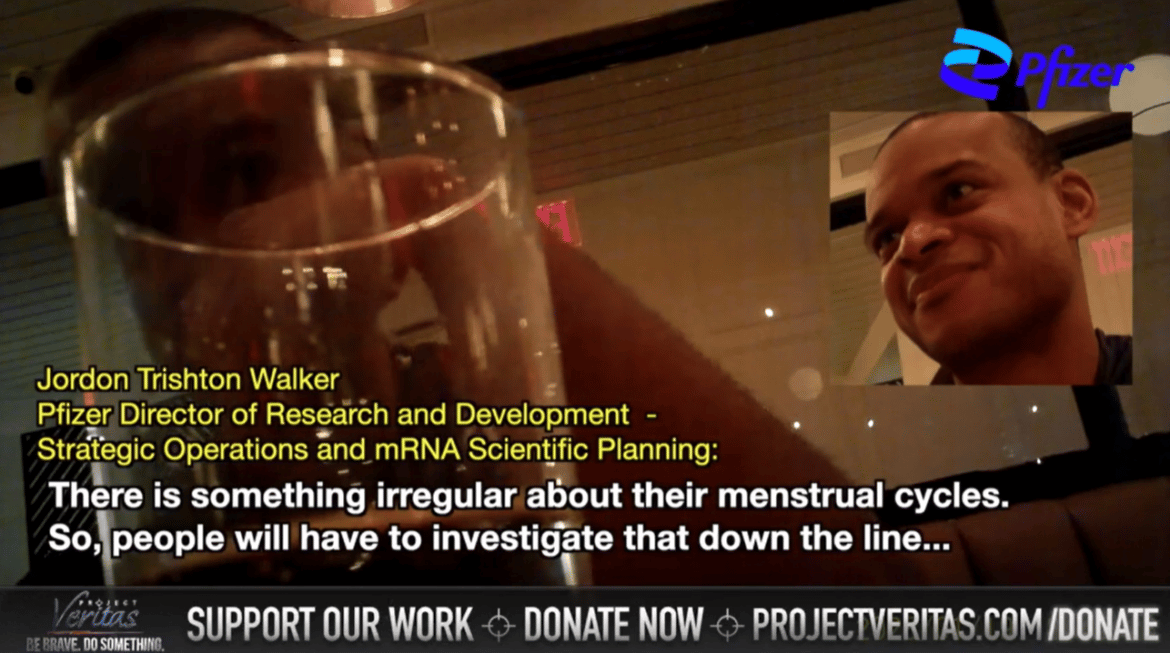 On Thursday, Project Veritas (PV) released undercover video of Pfizer Director Jordan Trishton Walker sharing his concern about women’s reproductive health after getting the Covid vaccine.