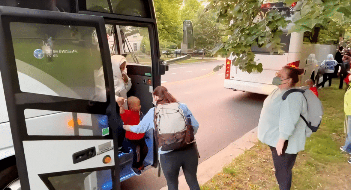 “The bus was filled with men, women and children, who were met with volunteers from SAMU First Response and Mutual Aid. They were loaded onto another charter bus, heading to what NBC News was told is a “place of refuge” to get their needs triaged and to figure out next steps.” NBC News reported.